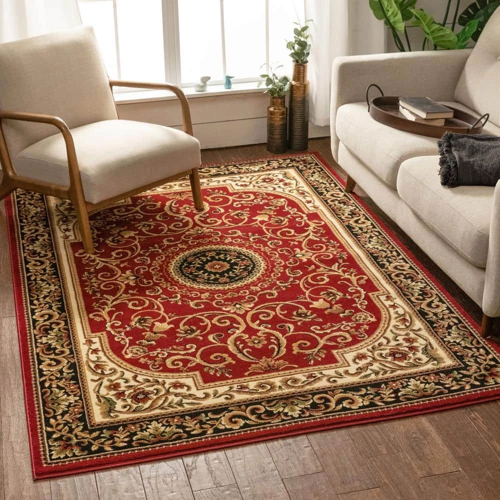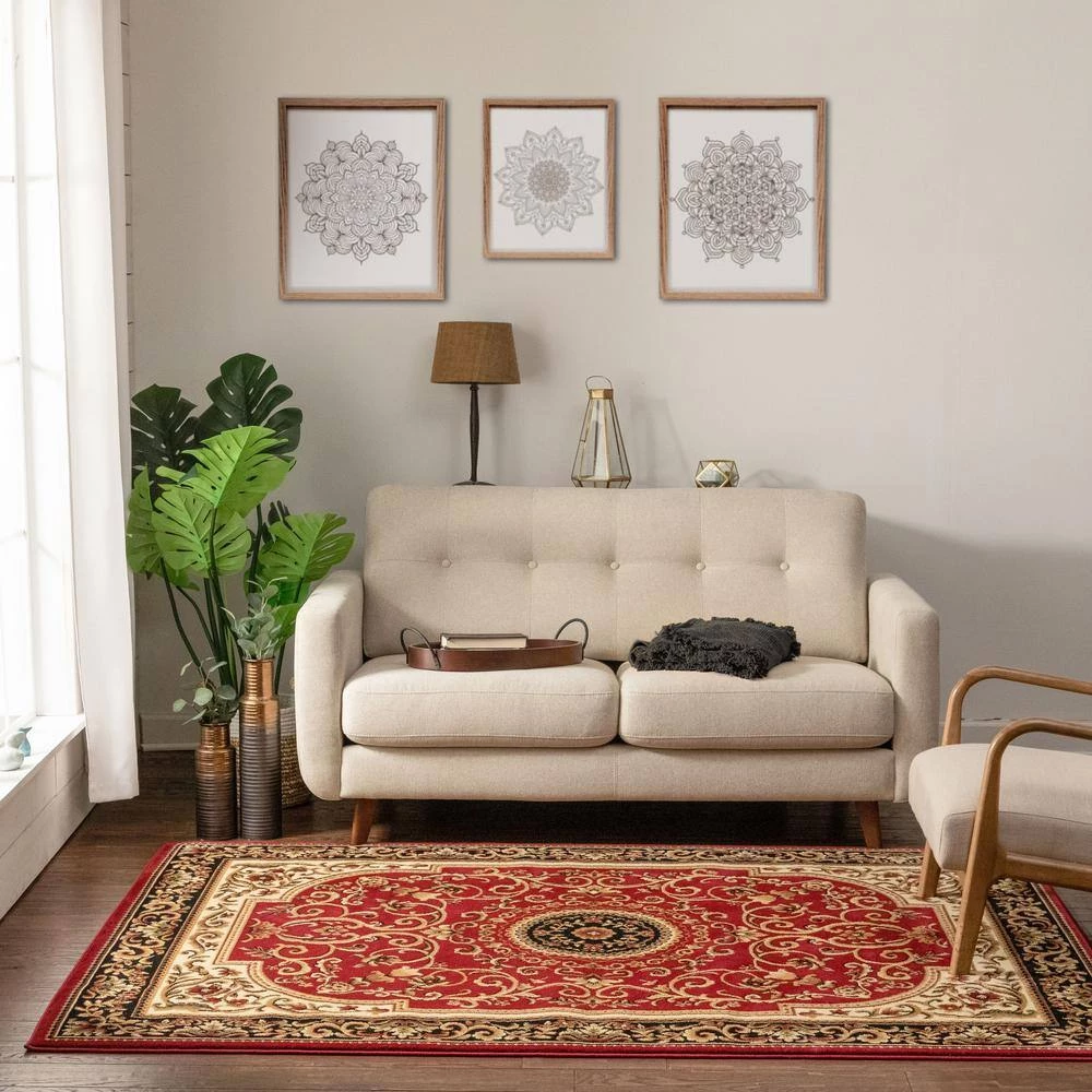 The Barclay collection brings together an array of patterns drawn from a carefully selected palette of Modern, European, and Persian Styles. Warm red, green, and blue jewel tones are accented by neutral tones of ivory and beige. The heat set polypropylene fiber gives a 0.4 in. pile that is soft, stain resistant, and doesn’t shed or fade over time. The 100% jute backing is safe for wood floors and all 4 sides of the rug are serged for improved durability. A wide range of shapes, sizes, and designs means this collection has something for rooms of every size and style.