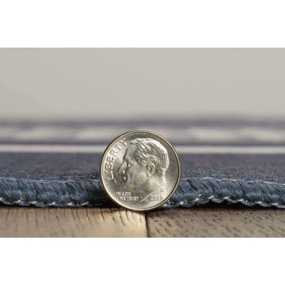 A fun and fashionable Indoor / Outdoor Washable Boynton Navy and Ivory 7′ X 9′ rug can liven up any space it occupies making this the perfect accent to a kitchen or patio. These rugs are the perfect combination of beauty and braun with a machine washable feature and flat pile grounded by a non slip back with colors and patterns that will wow your guests. Fully Outdoor ready with UV Fade Resistance and an interior that is made for breathability enhancing a quick dry to withstand rain showers and sprinklers. The Outdoor Washables Collection are ready to accept any challenges you can throw at it including children, pets and heavy traffic and can simply be tossed in a commercial washing machine or simply hosed off making it the perfect solution for your floors. All busy households take note this is the perfect rug for your home.