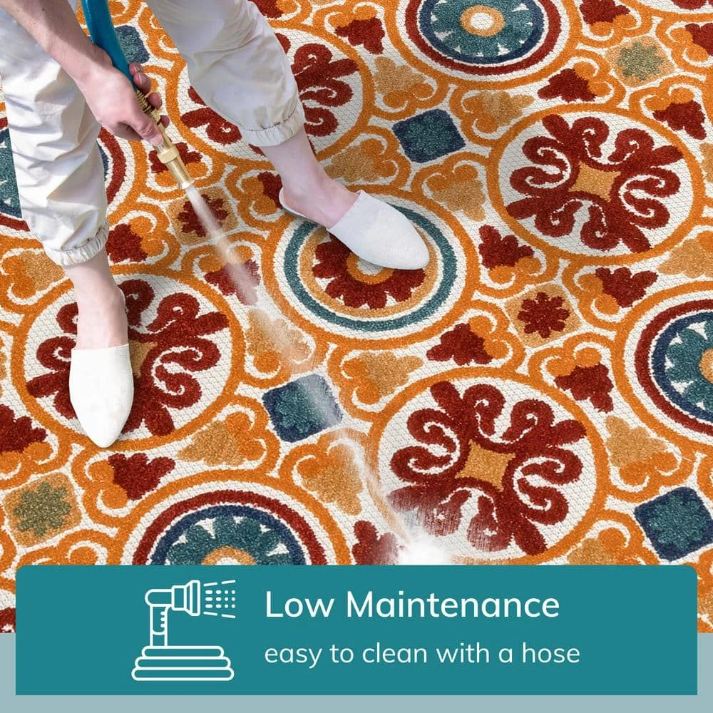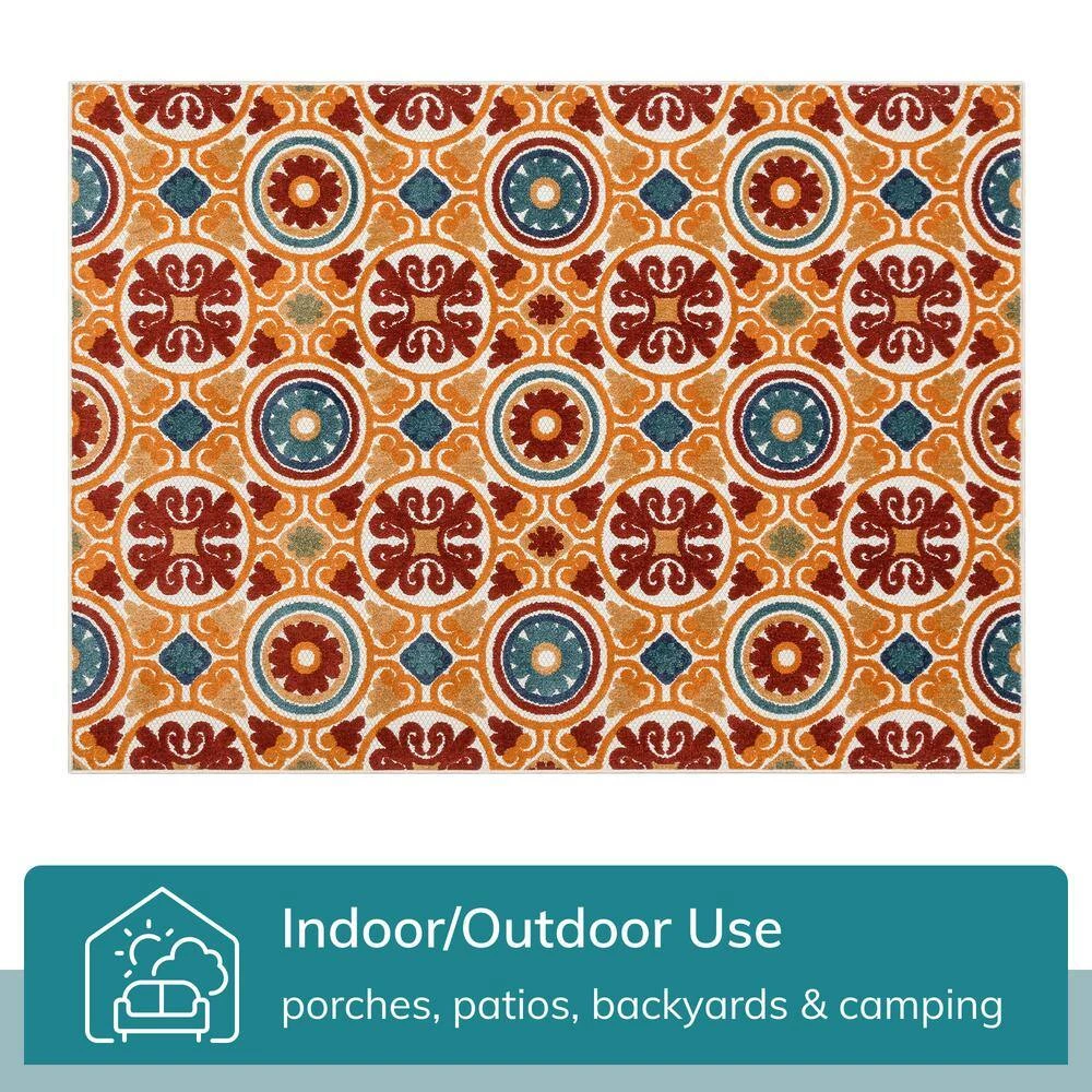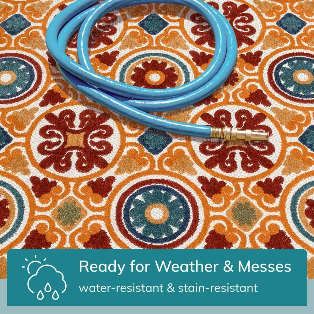 - Features high resistance to tough outdoor conditions with the aesthetics of an indoor rug
