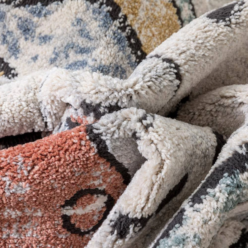 With classic patterns artfully distressed and detailed geometric designs that can remake a space, the Envie collection is at home with just about any modern decor. A chic natural geological design with matchable modern colors. The soft, bright pile is stain-resistant and the natural jute backing is safe for all flooring.
