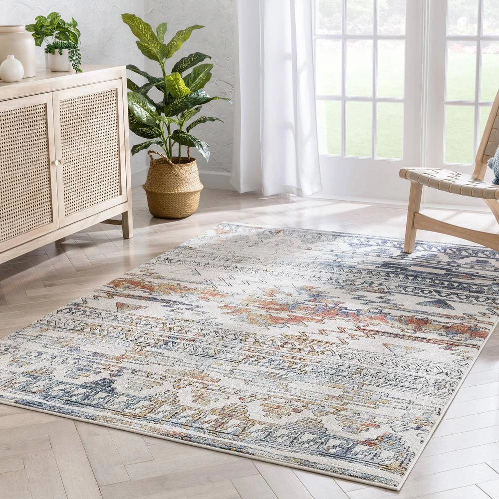 With classic patterns artfully distressed and detailed geometric designs that can remake a space, the Envie collection is at home with just about any modern decor. A chic natural geological design with matchable modern colors. The soft, bright pile is stain-resistant and the natural jute backing is safe for all flooring.
