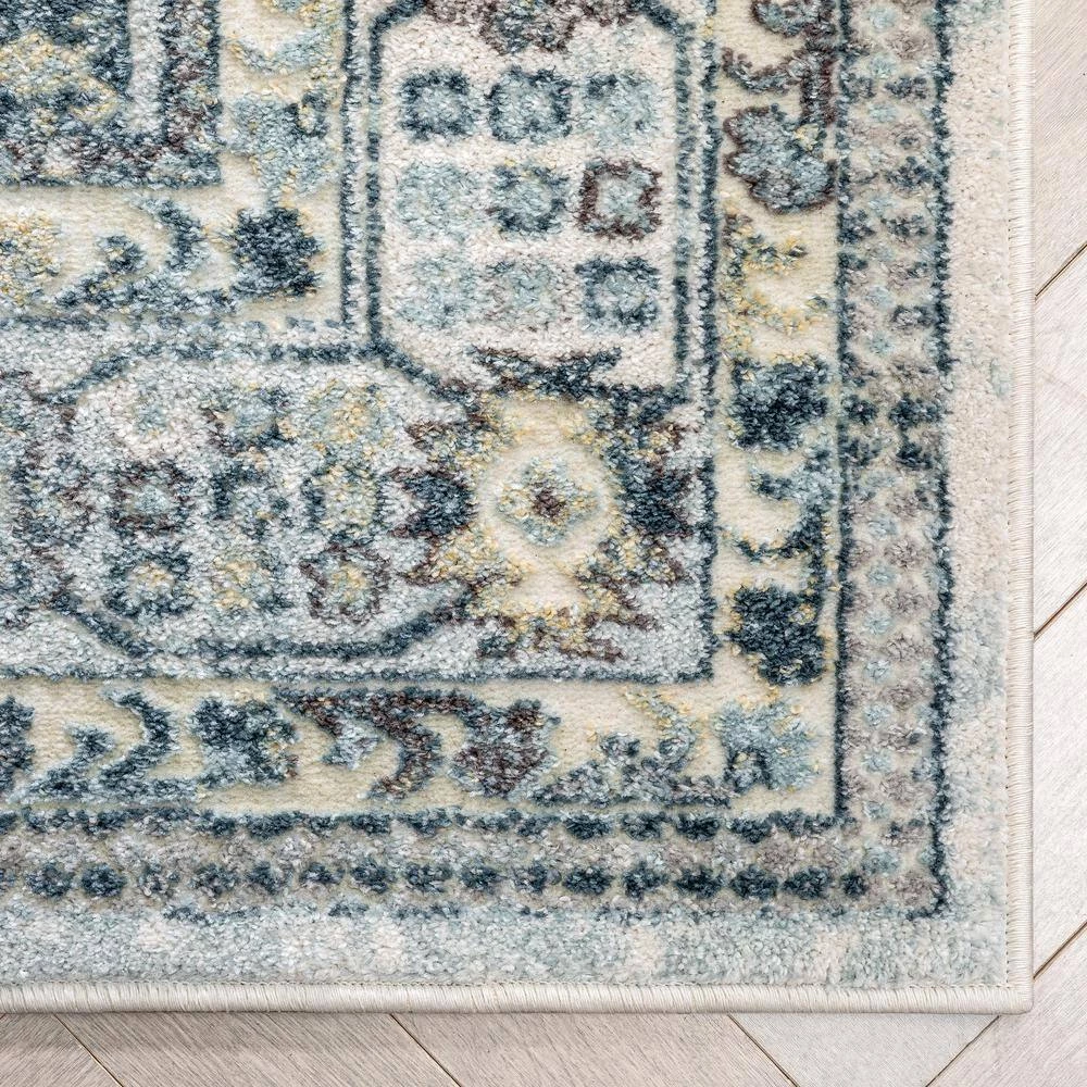 The Farah Collection takes inspiration from historical prints and gives them a Bohemian edge with distressed looks and contemporary colors drawn from nature. Its distressed-look pile is accented with multi-level yarns for a unique, dimensional look and delightfully soft feel. Grounding, natural color palette featuring (among others) green, blue, ivory and red.