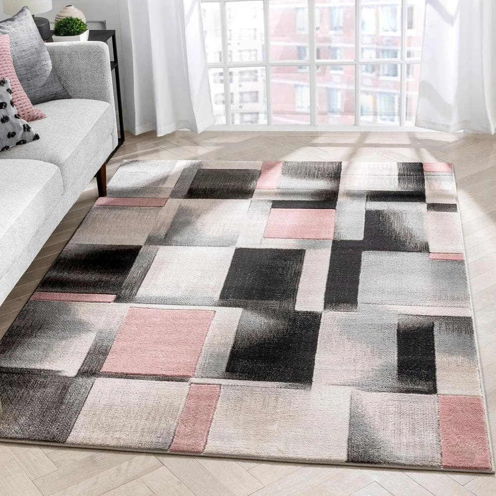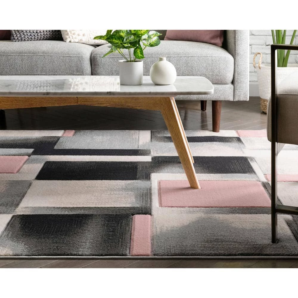 Good Vibes Louisa Blush Pink Modern Geometric Boxes 5 ft. 3 in. x 7 ft. 3 in. Area Rug by Well Woven