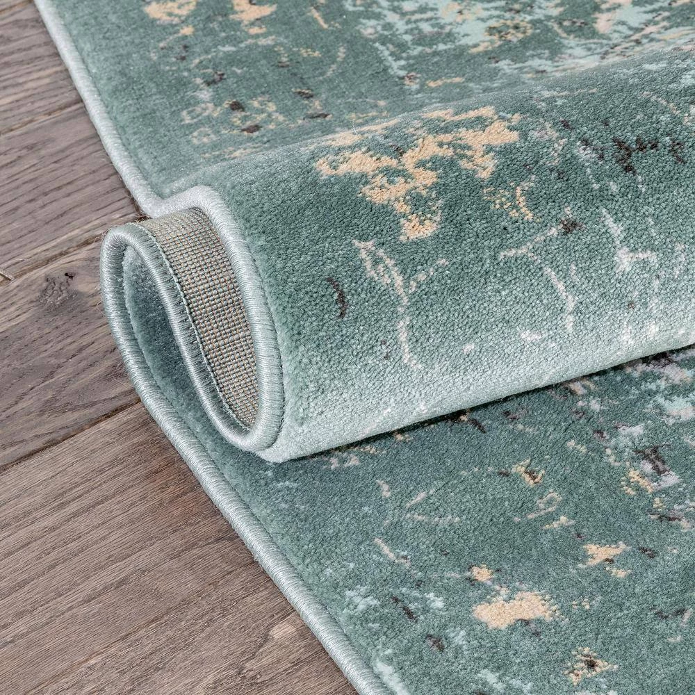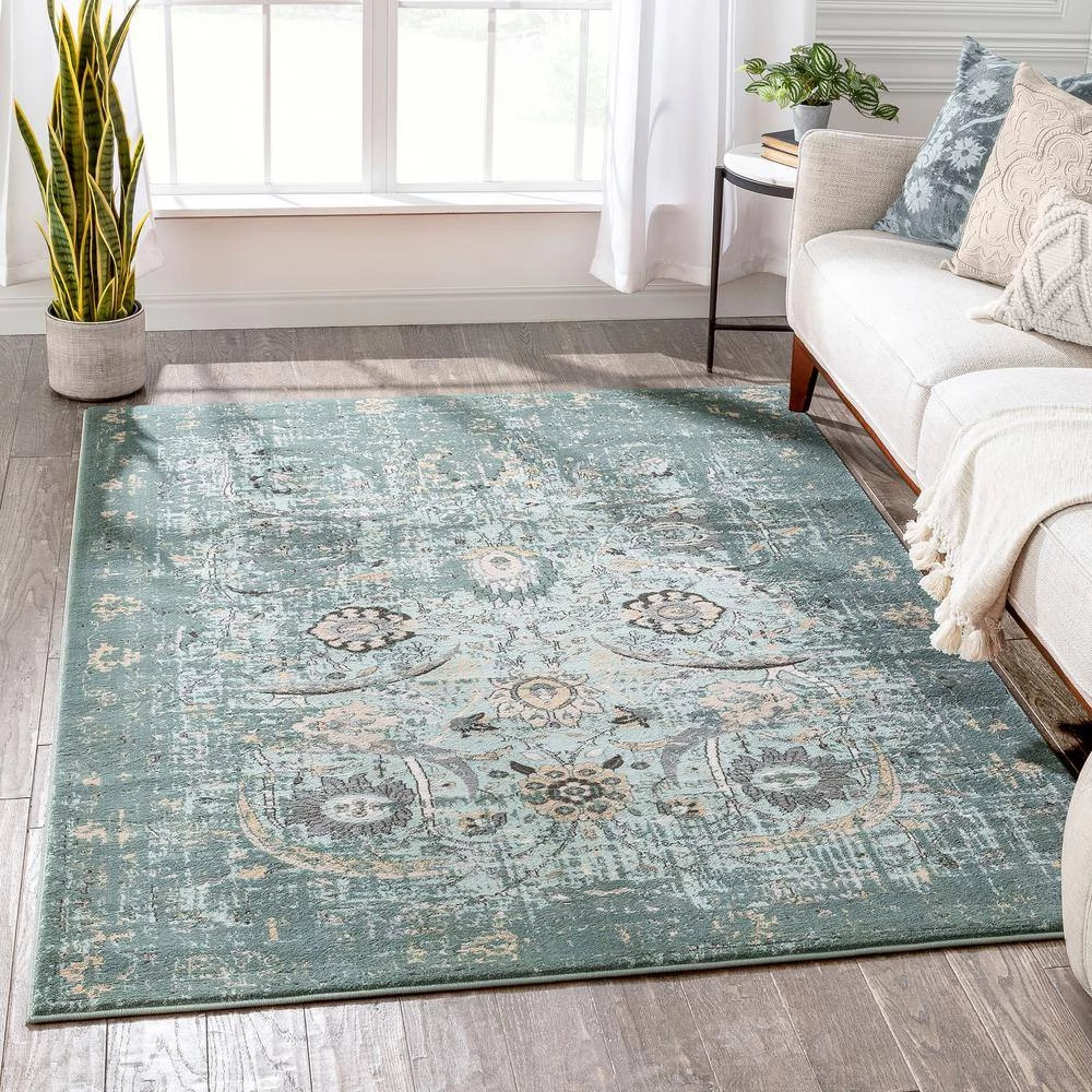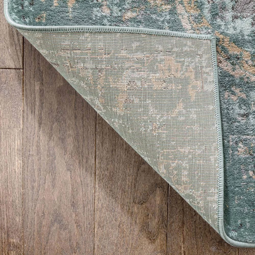 The Kensington collection is a modern take on the heritage styles of generations past. Classic medallion patterns are woven in a striking yet subdued palette of warm coral and copper with minty blues and greens that bring to mind a cool breeze through fresh green grass. These colors are anchored by soft, neutral beiges and given a distressed wear effect for a cozy, lived-in feel. The dense, 0.4 in. pile of fine, heat set polypropylene is soft, stain resistant, and won’t shed or fade over time. The rug’s 100% jute backing is safe for wood floors and all 4 sides of the rug are serged for improved durability.
