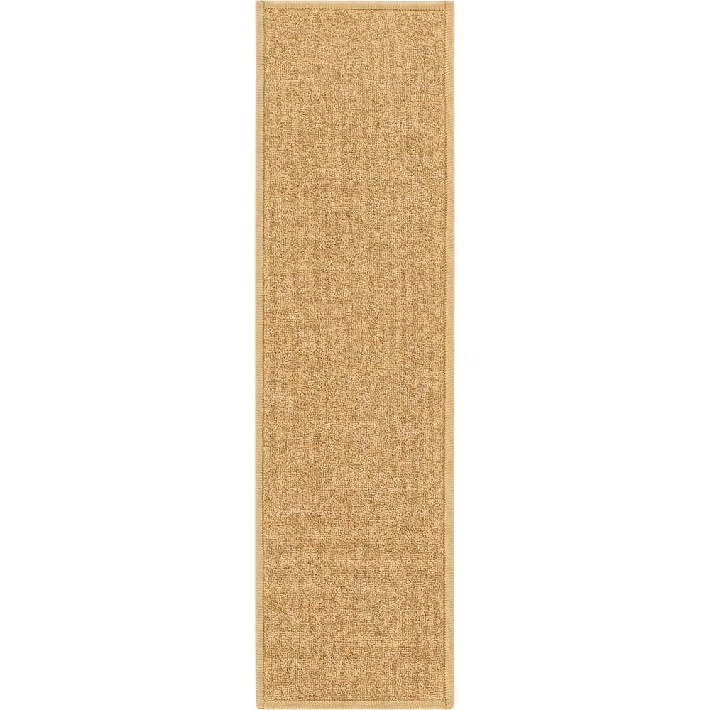Rubber-backed, nylon pile stair treads are non-slip and clean easily in a front-loading washing machine. Designed to withstand wear in high traffic areas and look good doing it. Synthetic materials are durable and weather resistant, repelling mold and mildew and resisting fading from UV exposure.