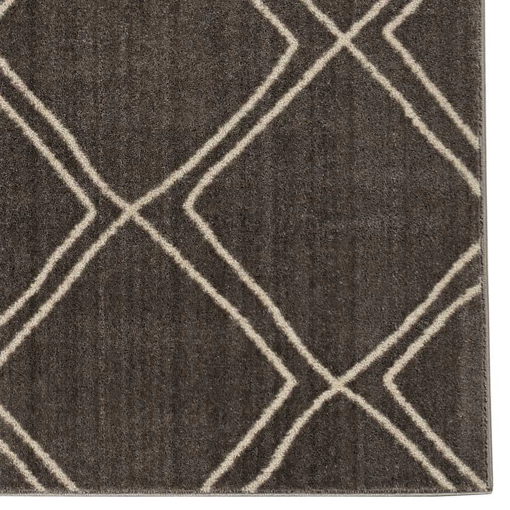 Lay the groundwork for a well balanced and inviting living space with this Lisbon Kamron Grey Ivory 2 ft. x 3 ft. Accent Rug. The diamond trellis pattern and subdued color scheme pair wonderfully in a variety of decor settings, while the soft texture provides comfort for you and your family. Made of 100% polyester, this area rug is a breeze to clean and will withstand foot traffic for many years to come. The medium pile construction is ideal for placement under furniture or out in the open and will not obstruct doorways.