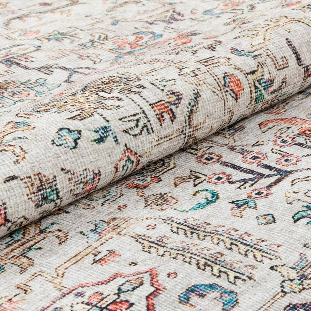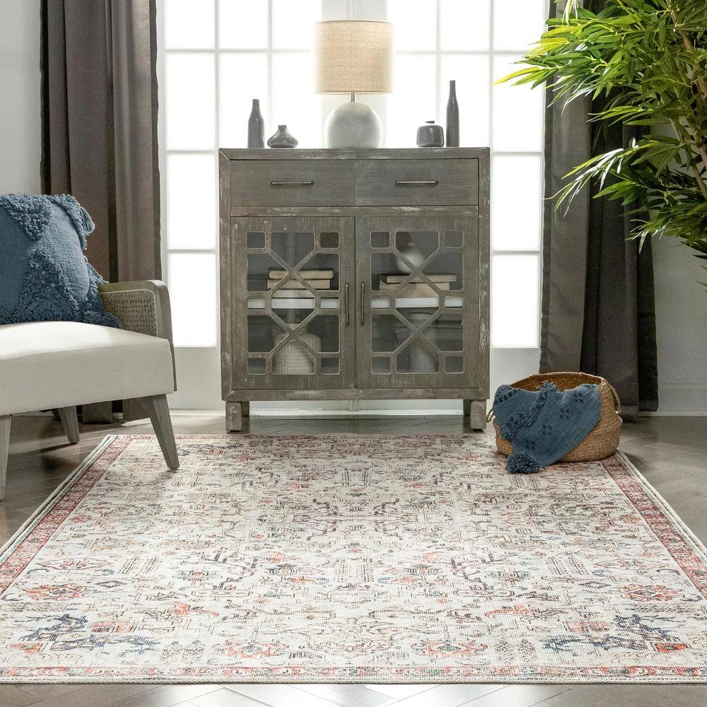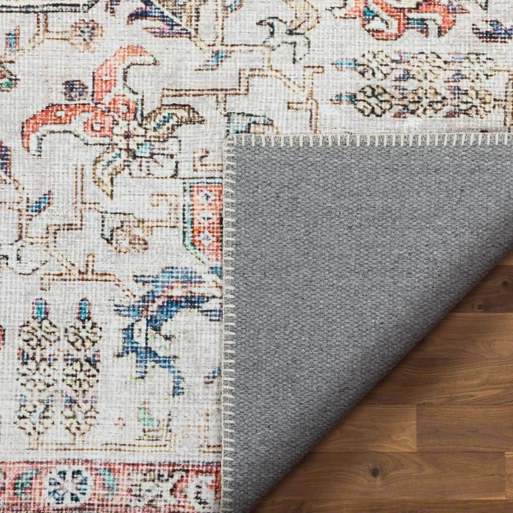 Lotus Pomona Ivory Vintage Medallion Botanical Border 5 ft. 3 in. x 7 ft. 3 in. Machine Washable Area Rug by Well Woven