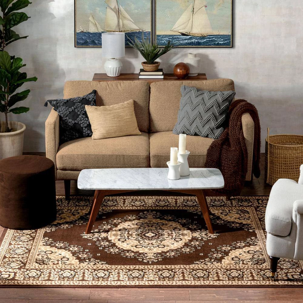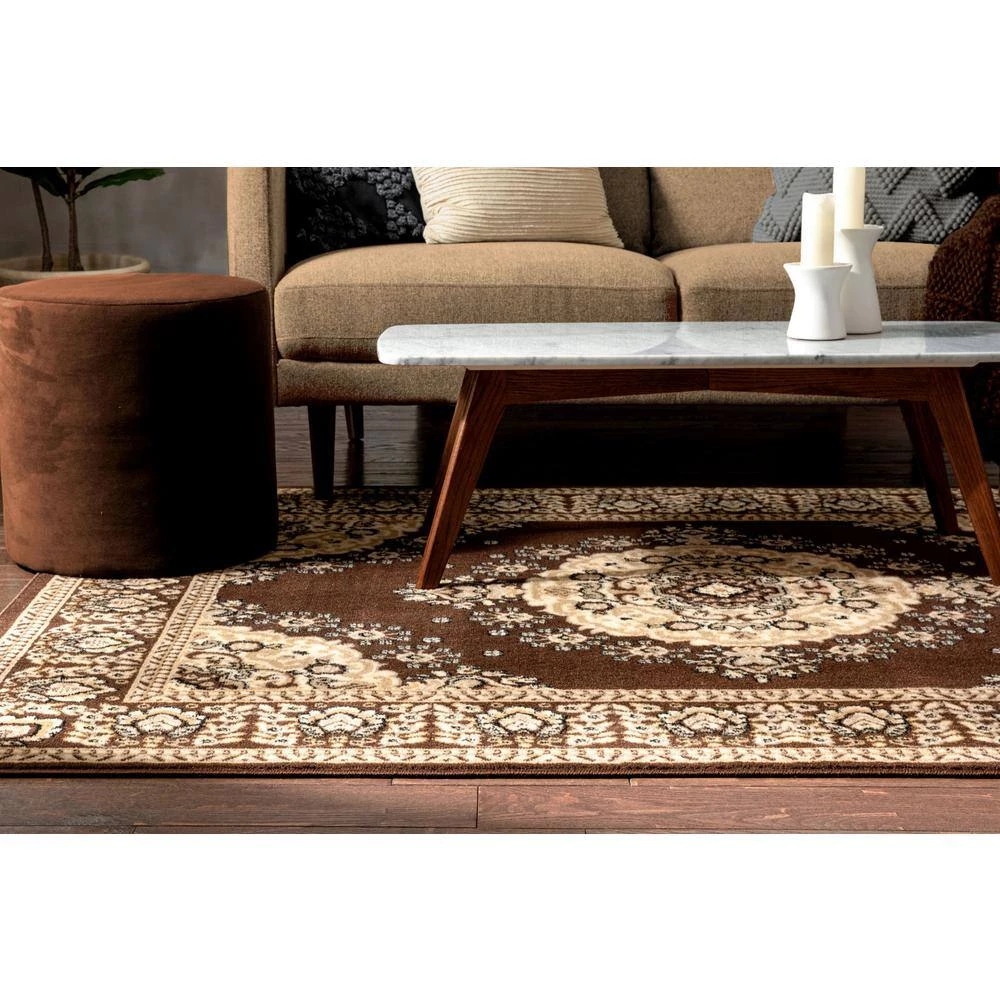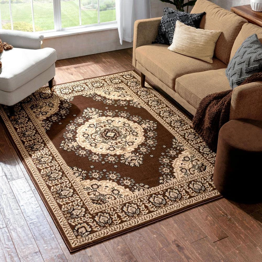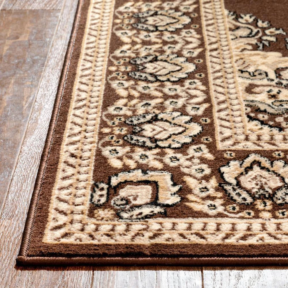 Persa Malika Traditional Medallion Persian Floral Brown 7 ft. 10 in. x 9 ft. 10 in. Area Rug by Well Woven