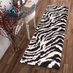 Madison Shag Safari Zebra Black 2 ft. x 7 ft. Contemporary Geometric Runner Rug by Well Woven