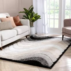 Lolly Mika Multi 7 ft. 10 in. x 9 ft. 10 in. Retro Chevron 3D Textured Shag Area Rug by Well Woven