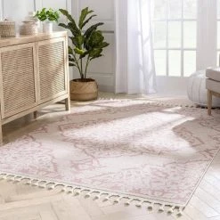 Loop-De-Loop Mara Blush 7 ft. 10 in. x 10 ft. 6 in. Medallion Botanical Area Rug by Well Woven