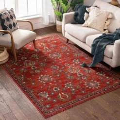 Tulsa Jackie Traditional Medallion Crimson/Red 5 ft. 3 in. x 7 ft. 3 in. Area Rug by Well Woven