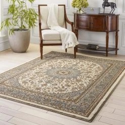 Timeless Le Petit Palais Grey Traditional Medallion 5 ft. x 5 ft. Round Area Rug by Well Woven