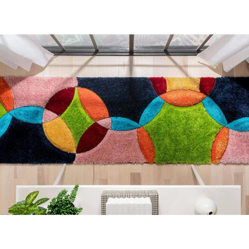 San Francisco Newport Modern Geometric Shag Multi 2 ft. 7 in. x 9 ft. 10 in. Runner 3D Textured Runner Rug by Well Woven