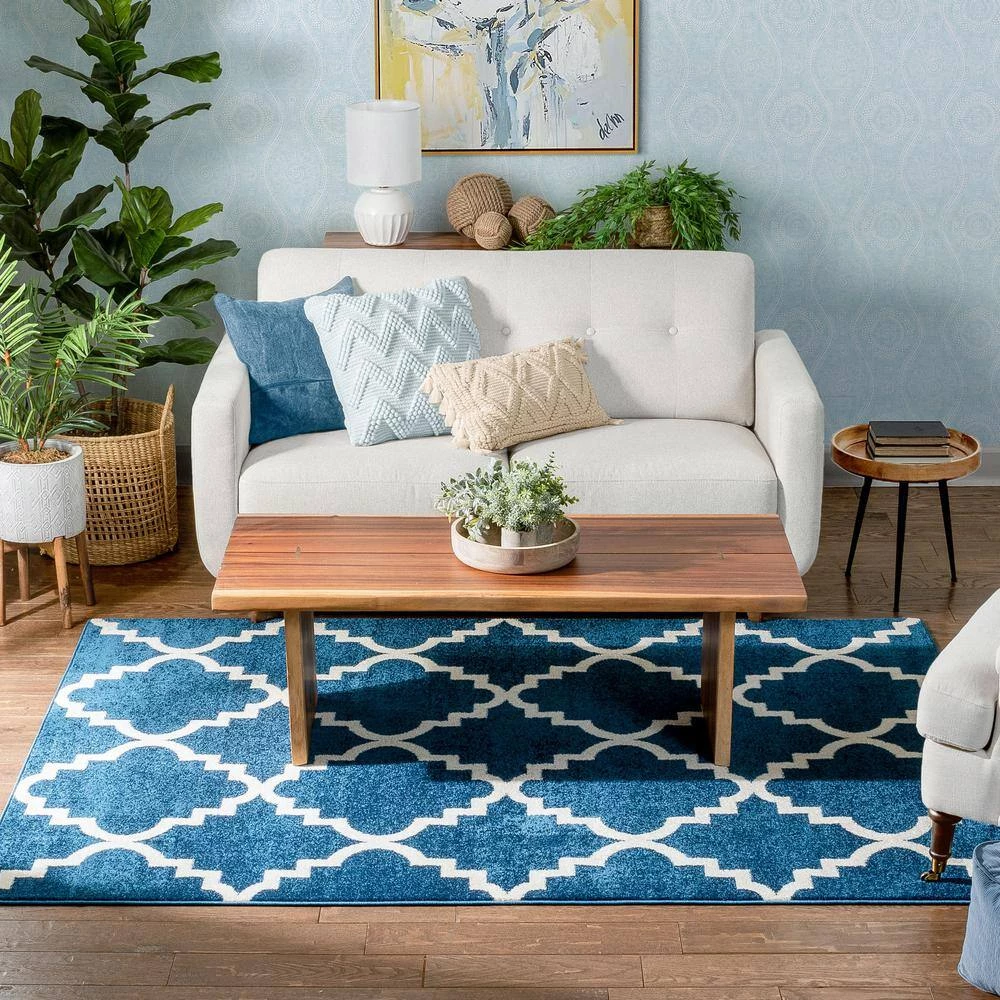 Select the Well Woven 8 ft. x 11 ft. Area Rug to upgrade your home. This rectangular rug is crafted with a modern style, keeping your space current and up-to-date. It has stain-resistant fabrics and fade-resistant materials. It comes in a blue shade, which will accessorize any floor. With its repetitive geometric pattern, this rectangular rug creates the ideal blend of classic and chic that will pair well with any decor. It has a 100% polypropylene design, which will effectively resist fading over the years. This rectangular rug has a plush pile, which will creates a luxurious look to your flooring.