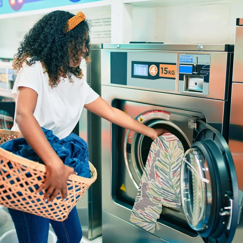- Easy clean in an industrial size washing machine at your local laundry mat on gentle cycle with cold water and mild detergent, then toss into the dryer on low heat or lay flat to dry or simply hose off and allow nature to dry while the rug is laying flat