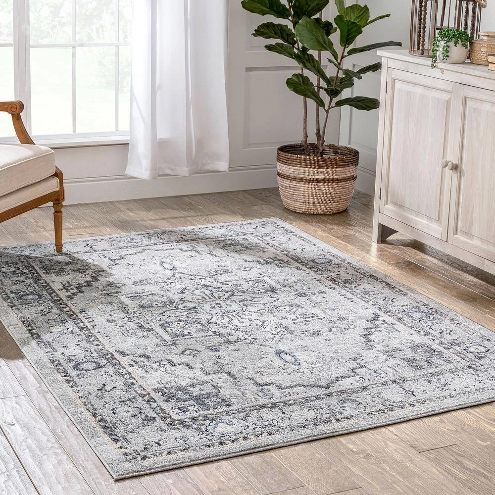 Topkapi Novara Vintage Oriental Medallion Pattern Grey Blue 7 ft. 10 in. x 9 ft. 10 in. Distressed Area Rug by Well Woven