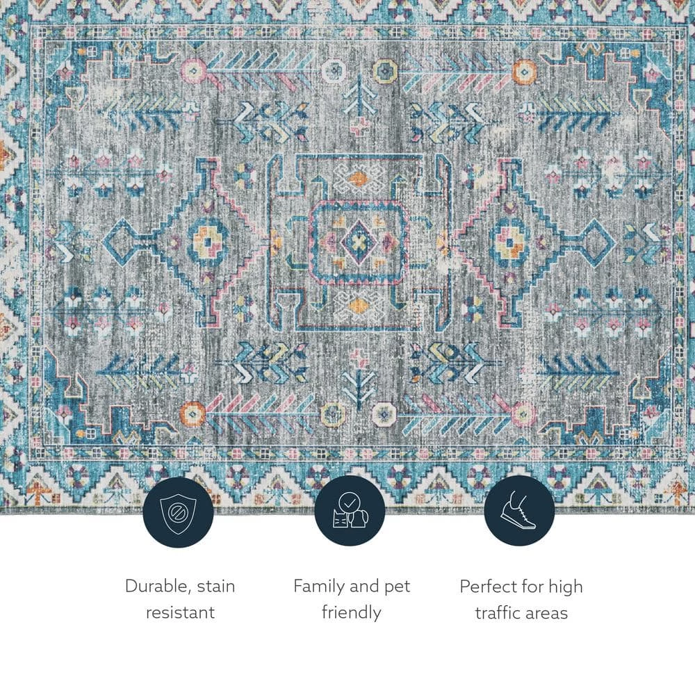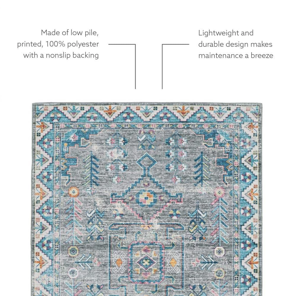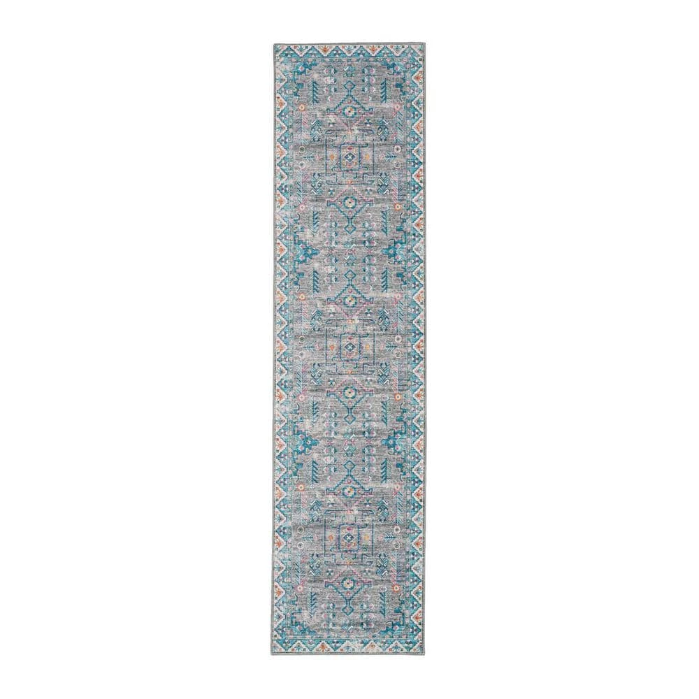 A Washable Aztek Grey/Green 2 ft. x 8 ft. rug that is both stylish and worry free feels like a dream come true. Spills, dirt, pet dander, and accidents are not a problem when you can throw it in any standard size washing machine. Perfect for high traffic areas this rug is both lightweight and durable. Made of stain resistant, 100% polyester with a nonslip backing, it is designed to be family and pet friendly, making maintenance a breeze. Save money and time without sacrificing style. You will want a rug like this in every room.