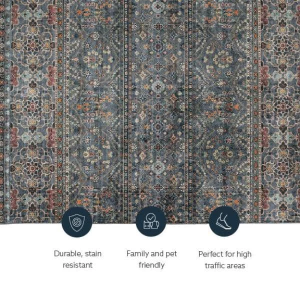 A rug that is both stylish and worry free feels like a dream come true. Spills, dirt, pet dander, and accidents are not a problem when you can throw it in any standard size washing machine. Perfect for high traffic areas this rug is both lightweight and durable. Made of stain resistant, 100% polyester with a nonslip backing, it is designed to be family and pet friendly, making maintenance a breeze. Save money and time without sacrificing style. You will want a rug like this in every room.