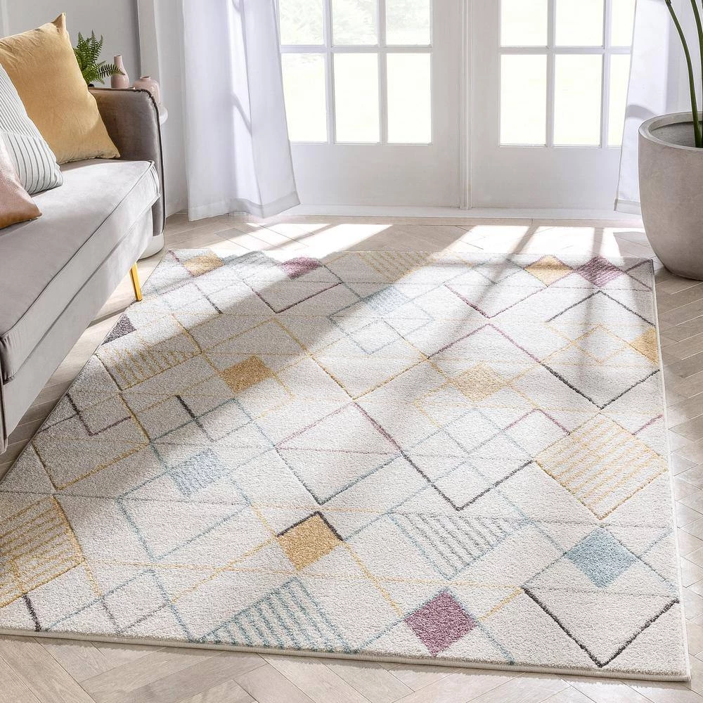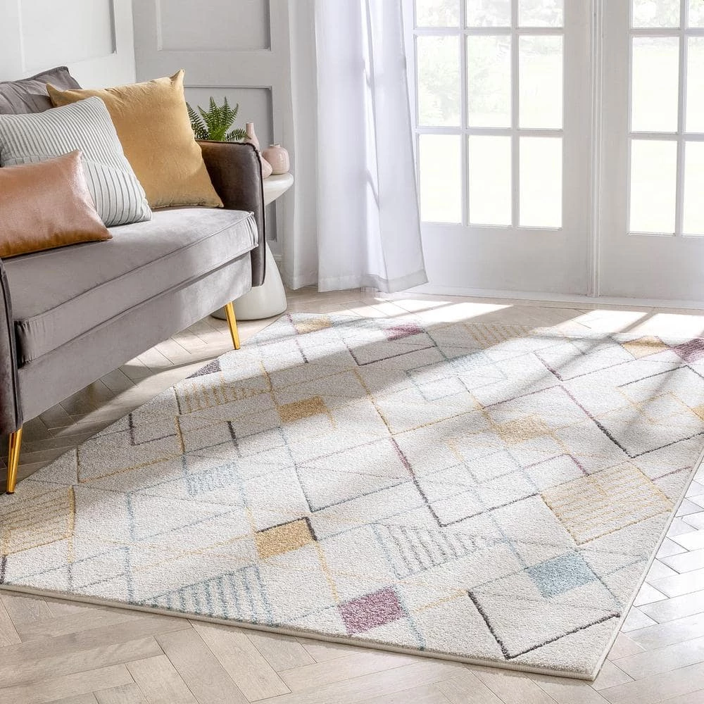 WHOA Prism White Geometric Distressed Scandinavian 3D Textured 5 ft. 3 in. x 7 ft. 3 in. Area Rug by Well Woven